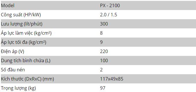 - Thông số kỹ thuật của máy nén khí Puma Trung Quốc 2HP
